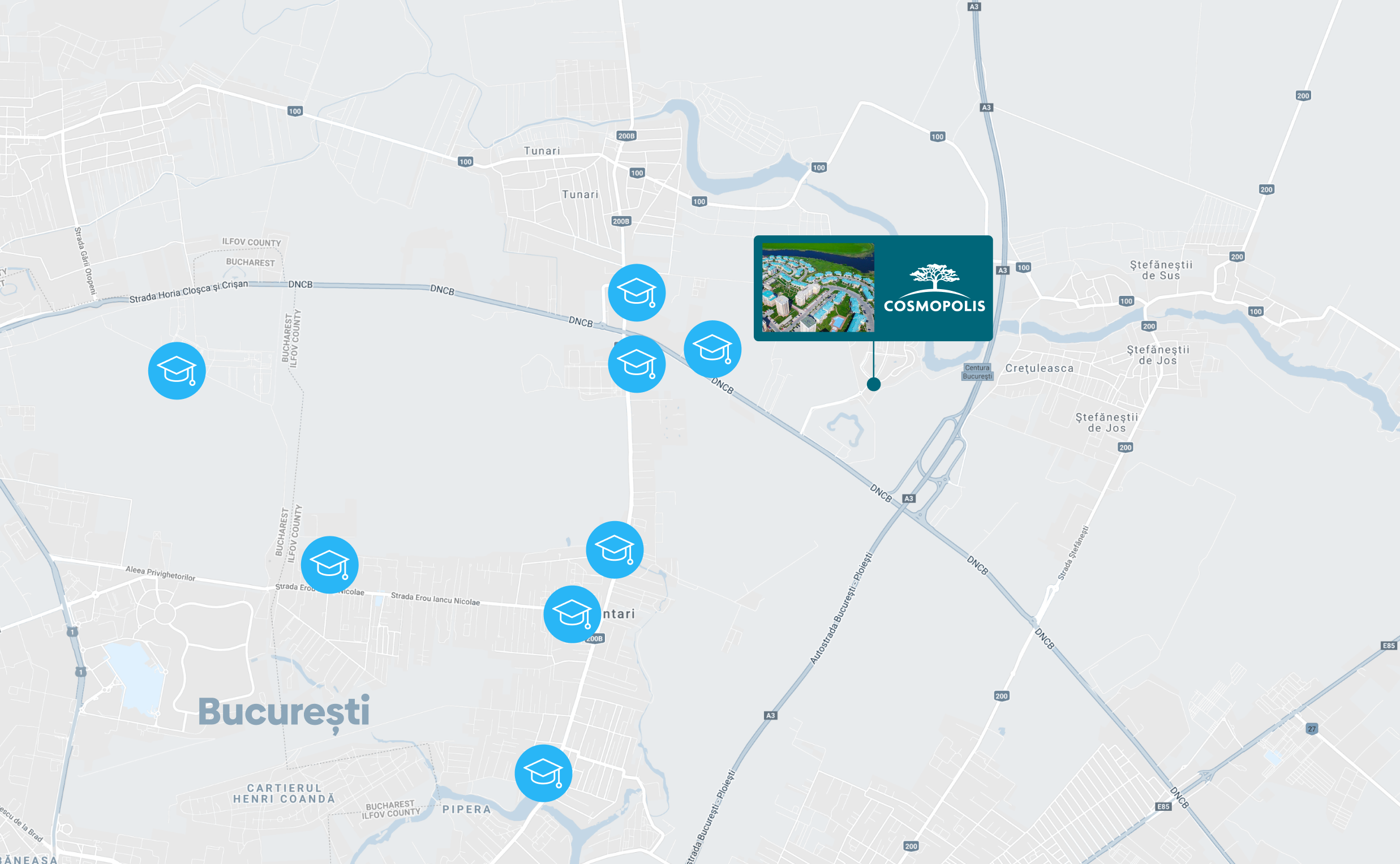 Cu acces rapid către centrele de afaceri din nordul capitalei, către unități de învățământ sau centre comerciale sau de recreere, dar și aproape de Aeroportul Henri Coandă sau ieșirea către A3.