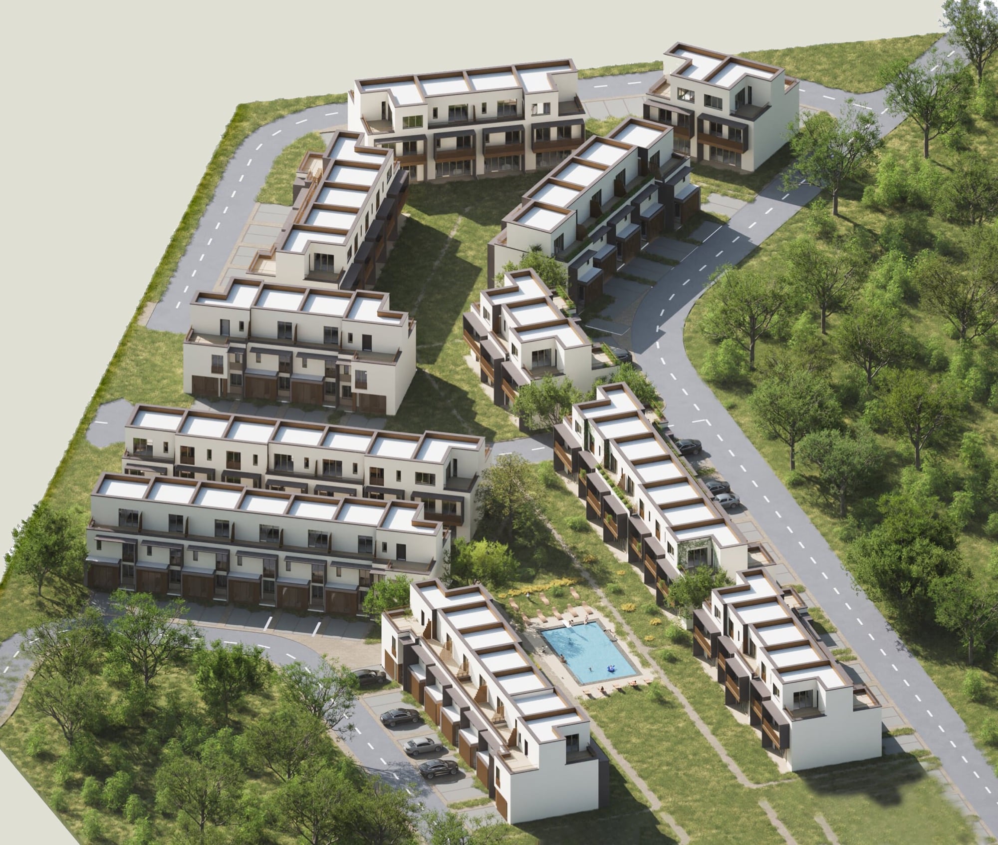 Urbanismul Evolia este gândit din start cu alei pietonale, piste de biciclete, zone verzi, locuri de joacă, terenuri de sport și infrastructură digitală completă prin aplicația My Cosmopolis.
